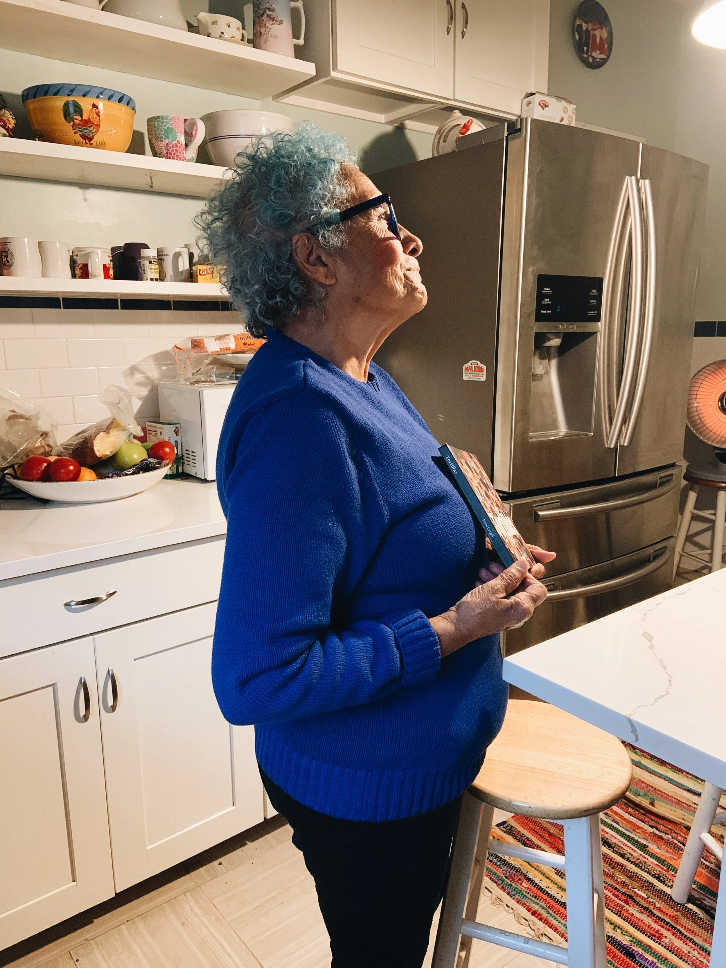 A 78-year-old woman with a beautiful shock of blue hair, born in Brazil, tells me how she came to call this small town outside of Lewiston her home.